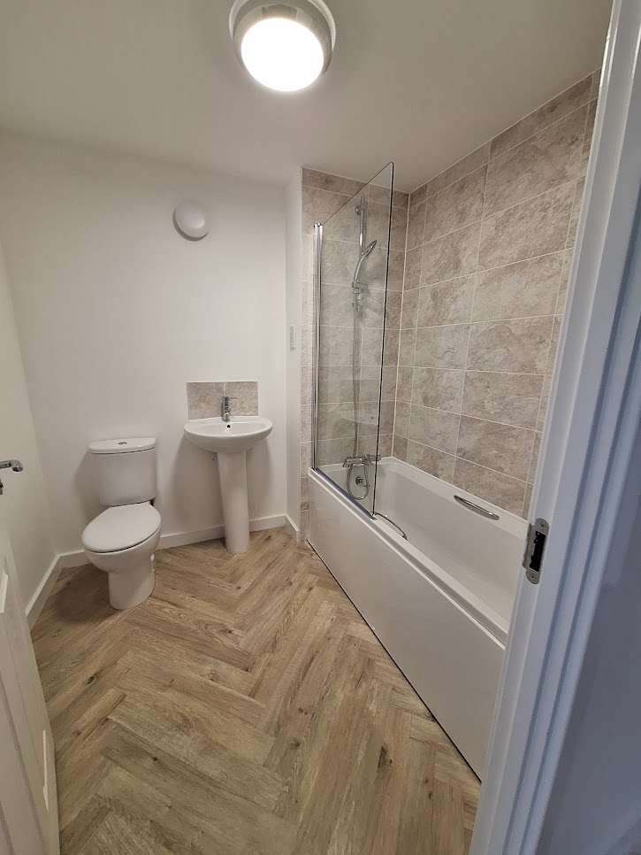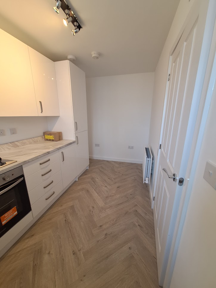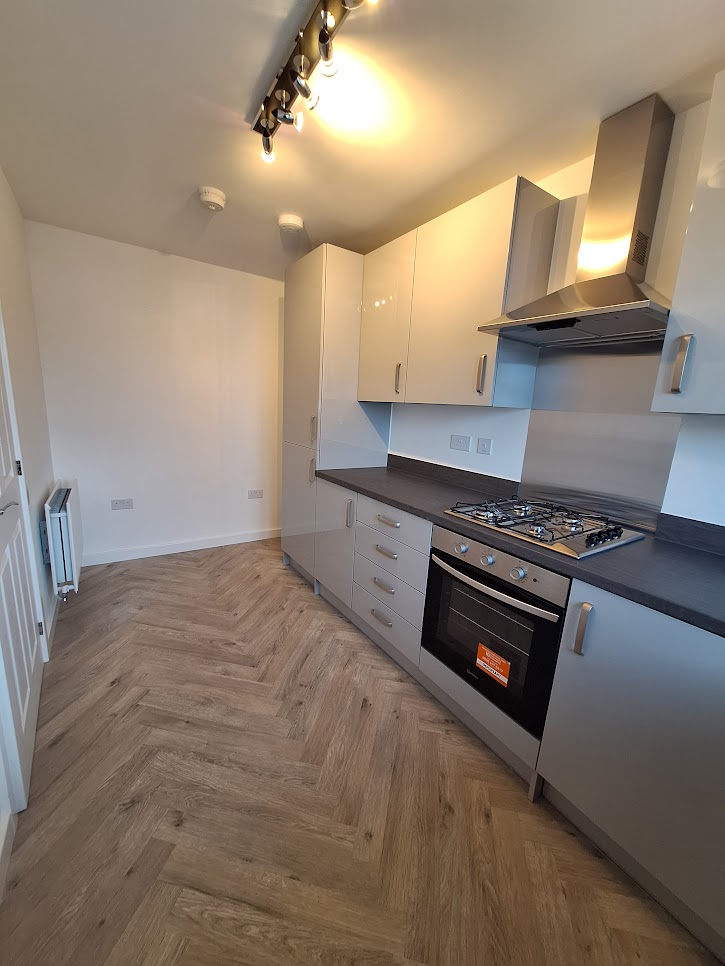 It features a modern kitchen and is well-suited to everyday living. The property is energy-efficient with an EPC rating of B and includes two parking spaces, one with an EV charging point. Wetrooms have vinyl flooring, and the kitchen is fitted with a built-in hob, oven, and extractor fan.